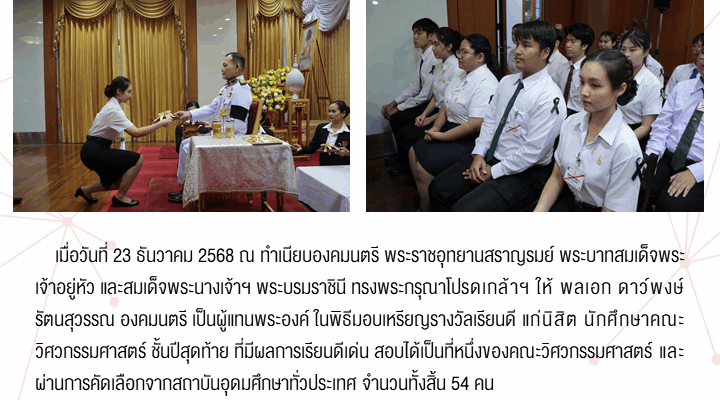นักศึกษาสาขาวิศวกรรมโยธา เข้ารับพระราชทานเหรียญรางวัลเรียนดี ประจำปี 2568